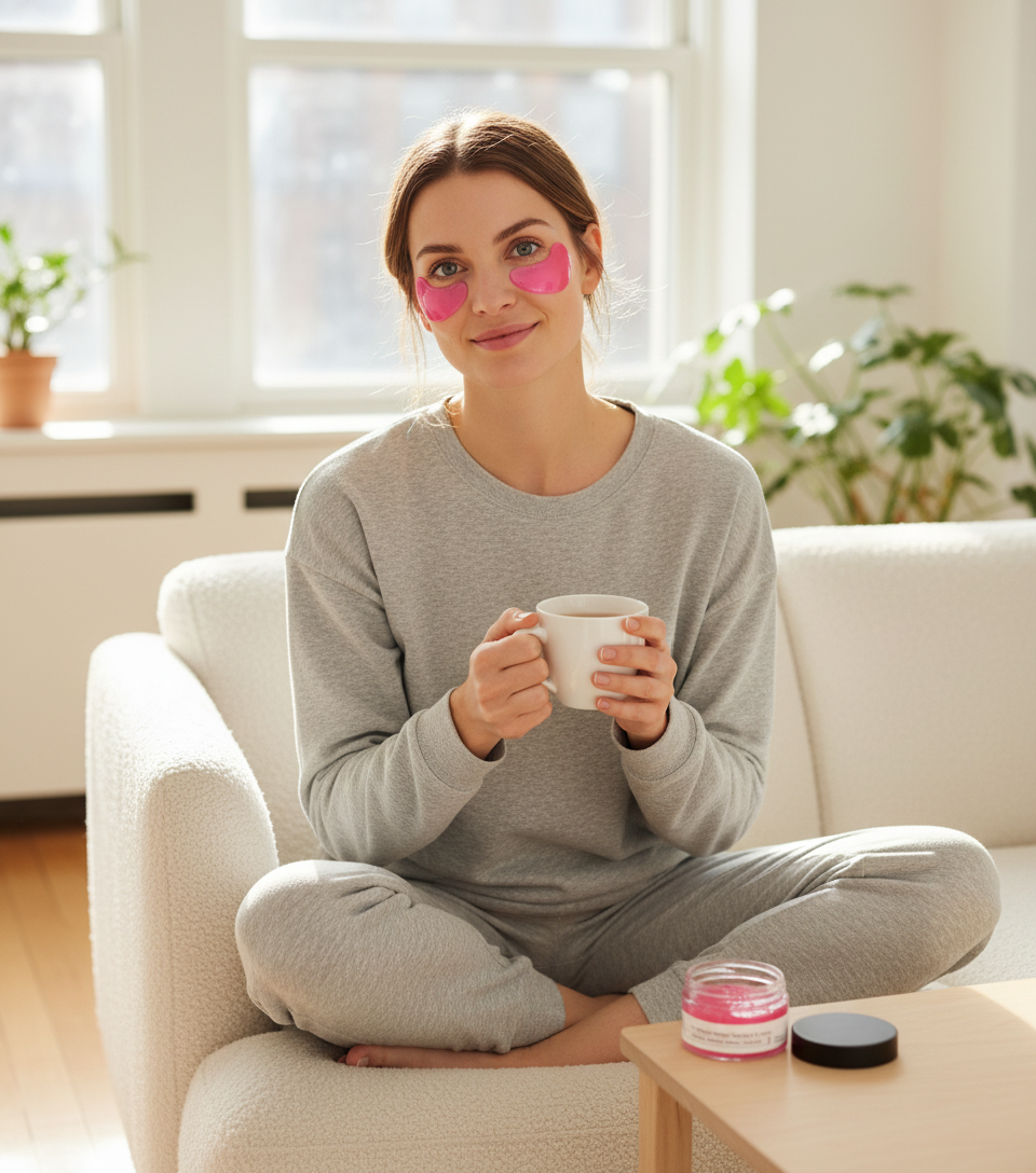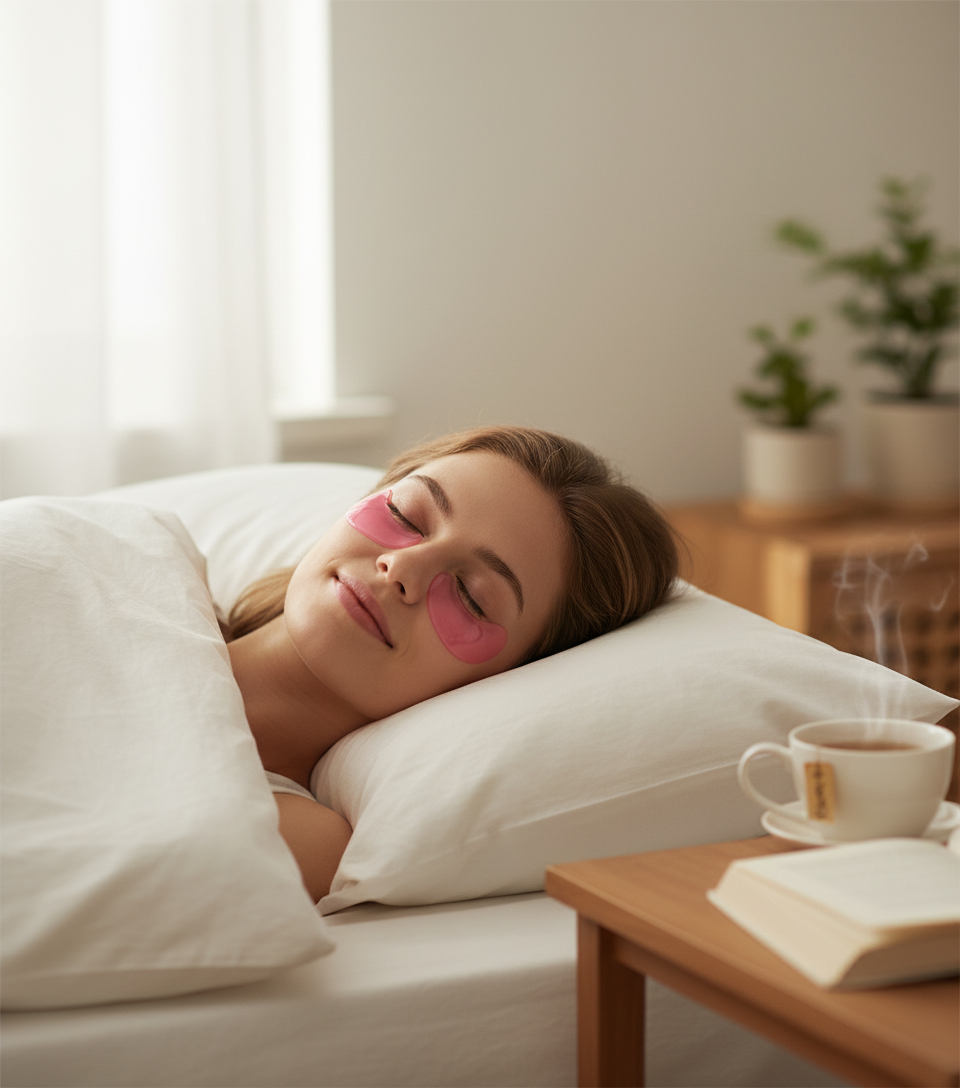 Lege die Patches unter die Augen und entspanne dich für 10–15 Minuten.